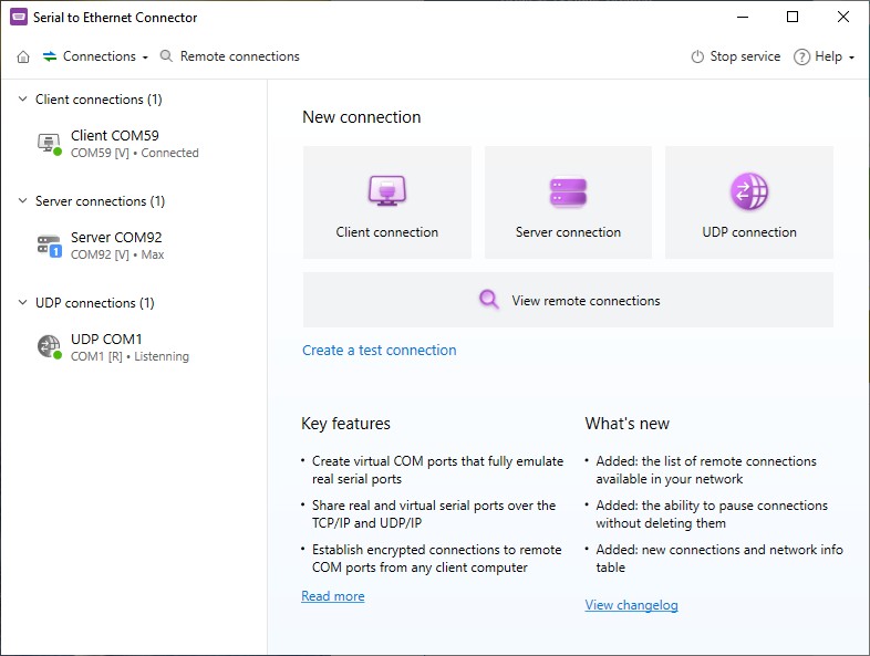 Serial to Ethernet Connector supports several new features, as well as a more optimized UI.