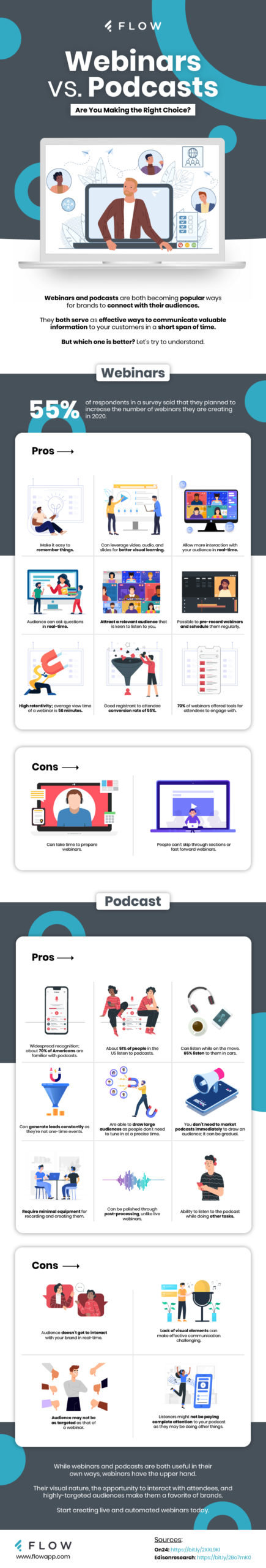 If you want to make a more informed decision, check out the infographic below from FLOW. It offers a detailed look at the pros and cons of both content formats.