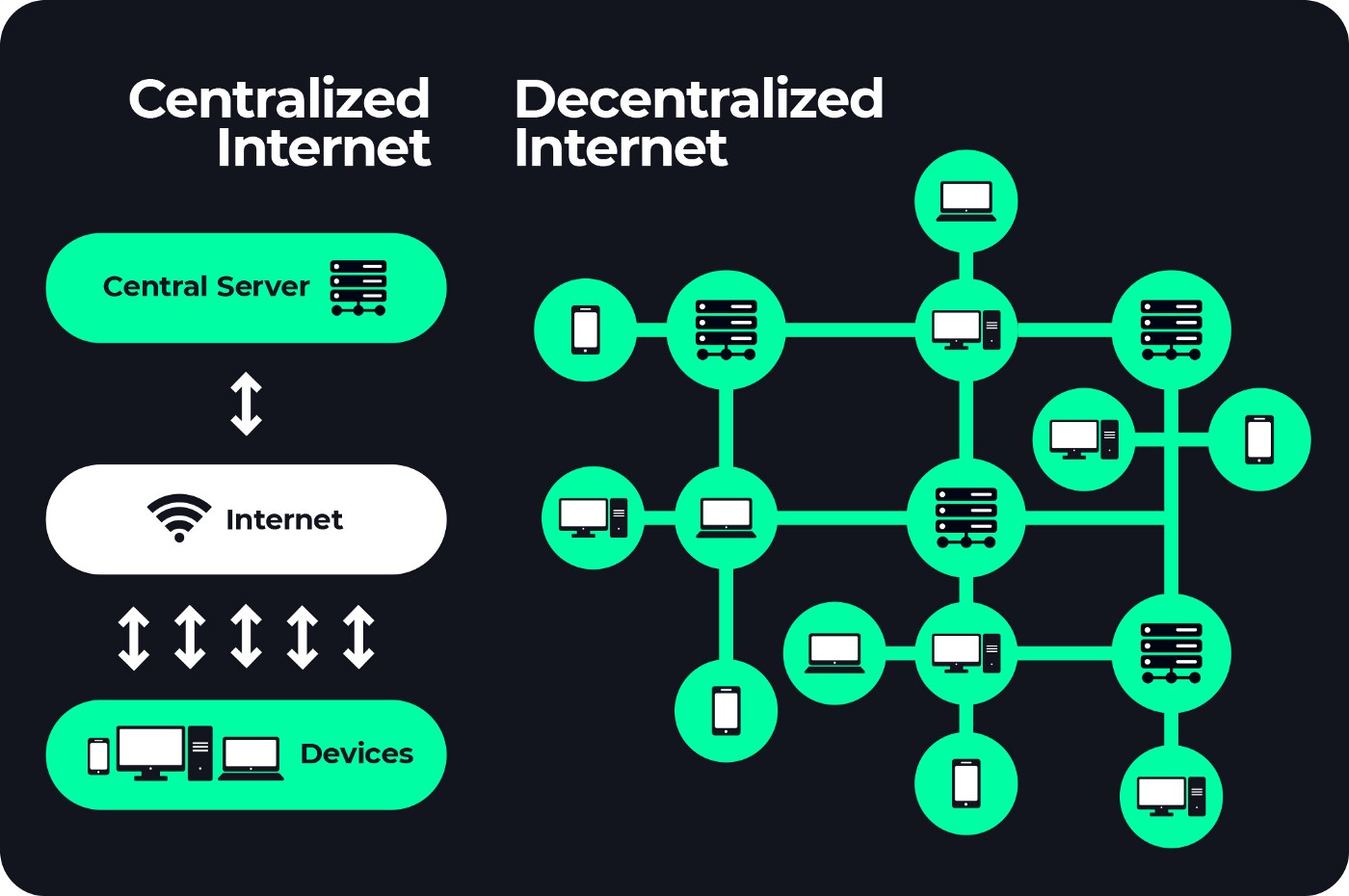 Today, the Internet lives by the principles of centralization – when most of the information passes through the servers of large companies, for example, Google or Amazon. Such a system is bad and dangerous in that it creates a monopoly, makes it easier for world governments to obtain the information they need about users through pressure, and in general violates the very main principle of freedom of information.