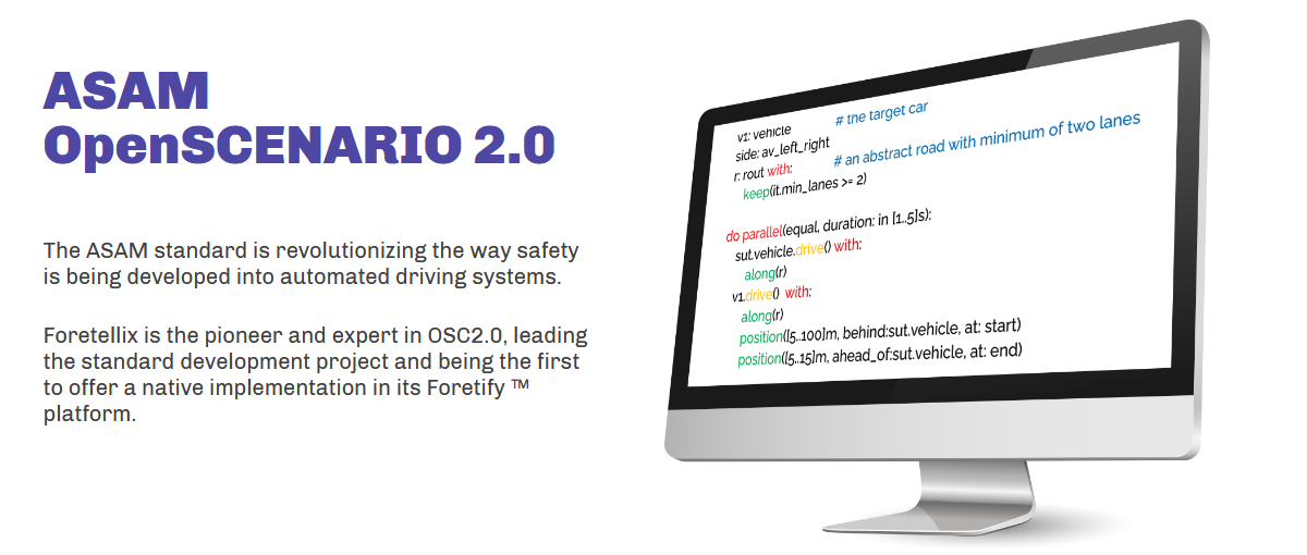 The release of OpenSCENARIO V2.0 was scheduled for November 2021. OpenSCENARIO V2.0 is developed by the Association for Standardization of Automation and Measuring Systems (ASAM) as a standard for expressing scenarios with dynamic content in advanced driver-assistance systems (ADAS) and autonomous vehicle (AV) development.