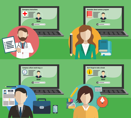 - Talk about the main thing. Notifications that appear on the screen before turning on the computer are something that cannot be missed. If you have important news, innovations, and useful but not urgent information that needs to be conveyed to everyone, create such mailing lists, and your colleagues are guaranteed not to miss anything.